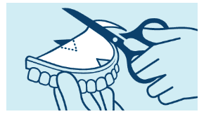 DICA: Aparar o excesso com uma tesoura até o tamanho estar correto. Podes utilizar esta almofada como modelo para as restantes para poupar tempo! Tenta cortar as almofadas à noite para tornar a rotina de colocação da prótese matinal rápida e fácil.