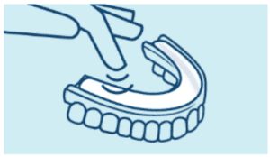 Passo 3 – Introduzir a prótese na boca e morder uniformemente durante 5 segundos.
