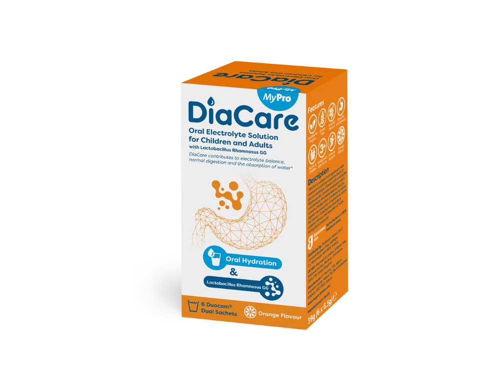 Suplemento alimentar com Sais de Hidratação e Probióticos. Repõe a hidratação causada pela perda de líquidos (derivada da diarreia, desconforto intestinal, vómito persistente, febres acompanhadas de sudorese intensa) e regulariza a flora intestinal de forma prática e com sabor agradável a laranja. VEGAN E SEM GLUTEN.